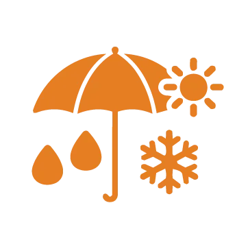 Yağmur, kar ve güneşe karşı dirençli özel kumaş ve iskelet yapısı.