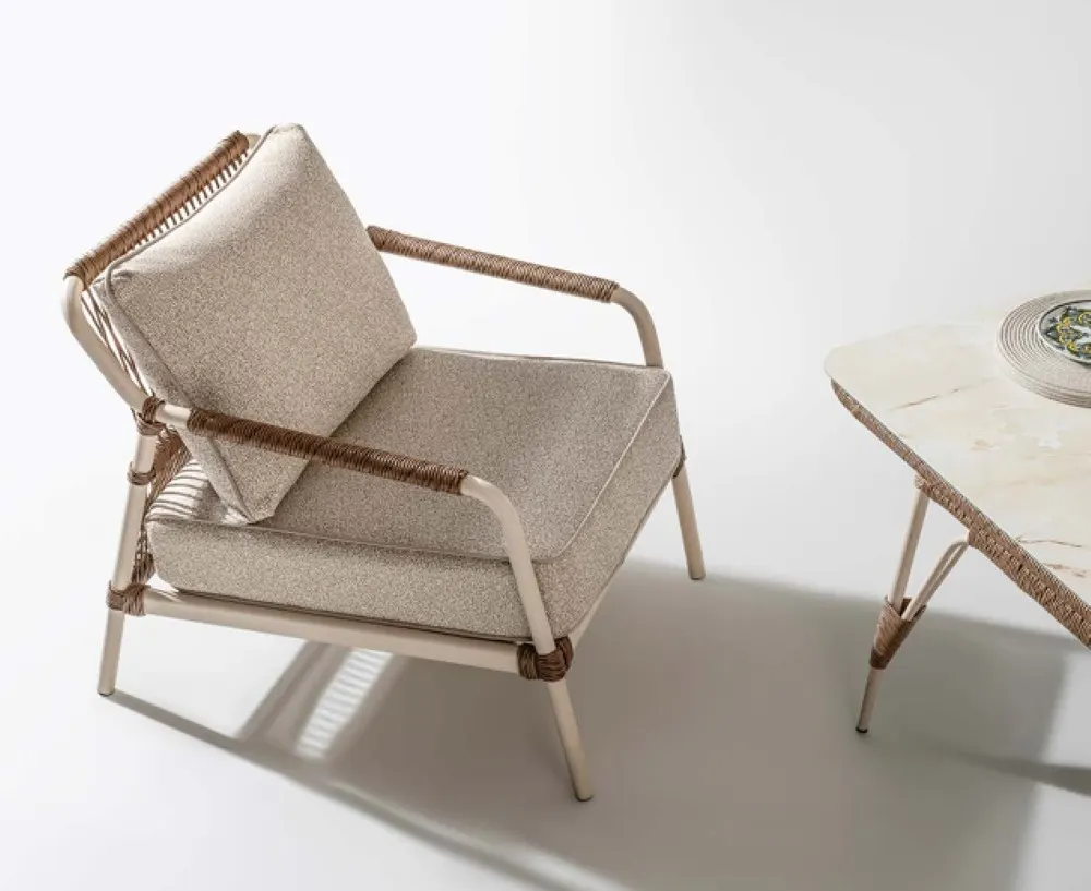 İnce detaylarla şekillenen tasarımıyla, mekânı yormadan şıklık sunan Belinda Oturma Grubu; alüminyum gövdesi ve rattan dokusuyla, dayanıklılığı zarif bir dengede buluşturur. Yumuşak hatları ve doğal dokusuyla bulunduğu alana sıcaklık katar.
