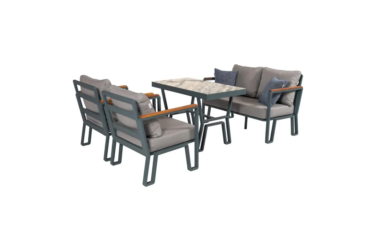 Uzun ömürlü alüminyum gövde, birinci sınıf İreko ağacı ve UV stabilizatörlü ip örgü ile hem şıklık hem dayanıklılık sunar.