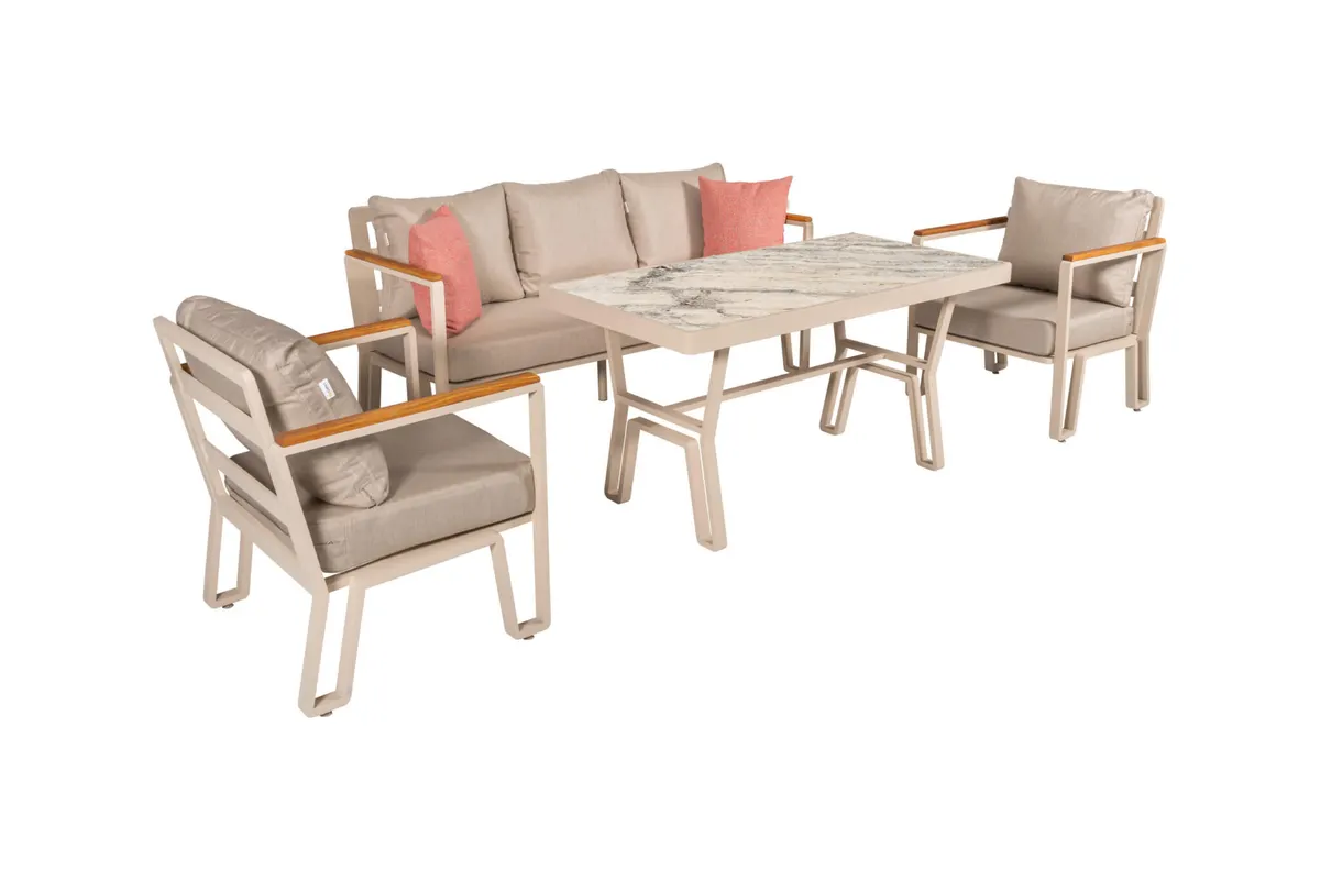 Uzun ömürlü alüminyum gövde, birinci sınıf İreko ağacı ve UV stabilizatörlü ip örgü ile hem şıklık hem dayanıklılık sunar.
