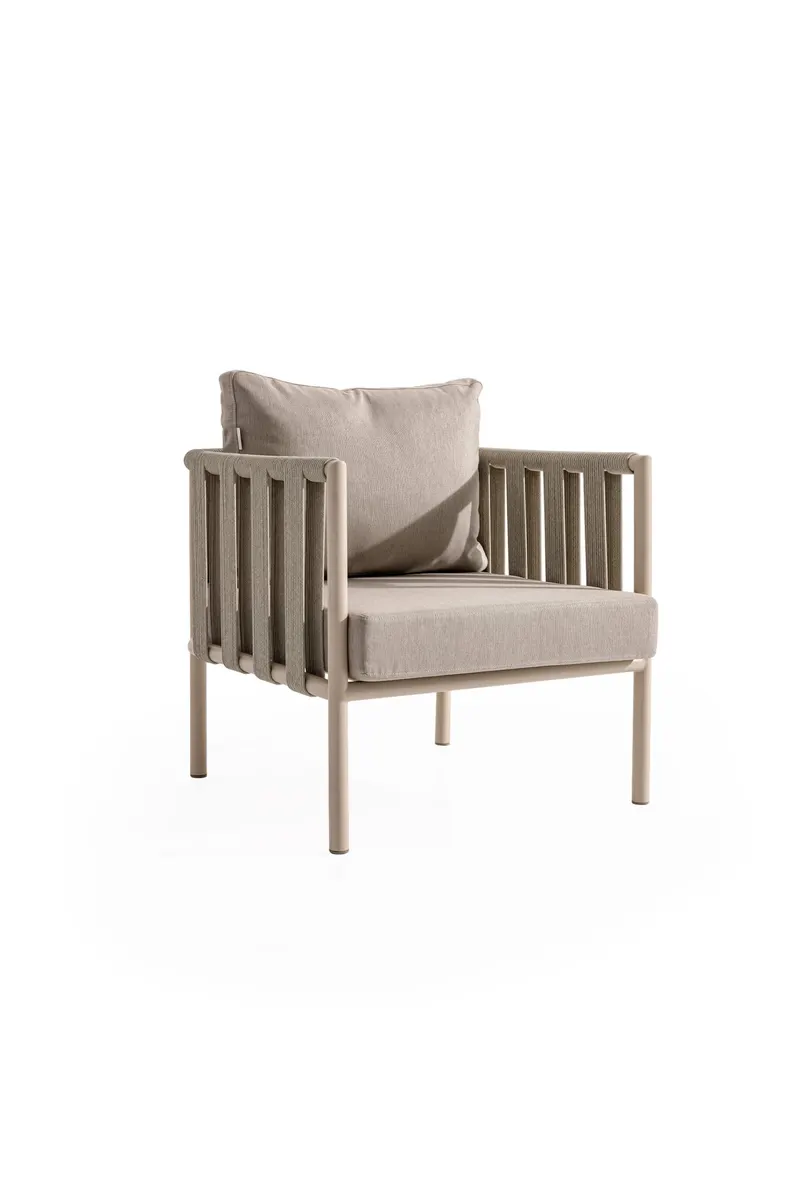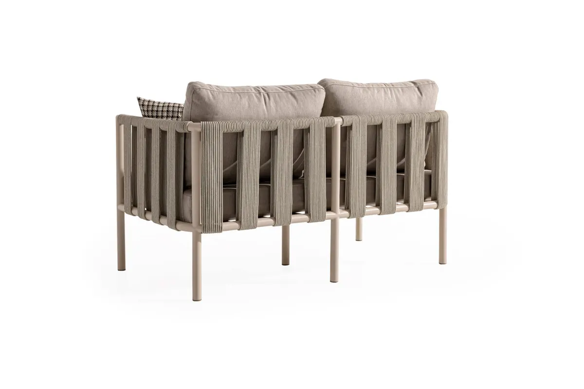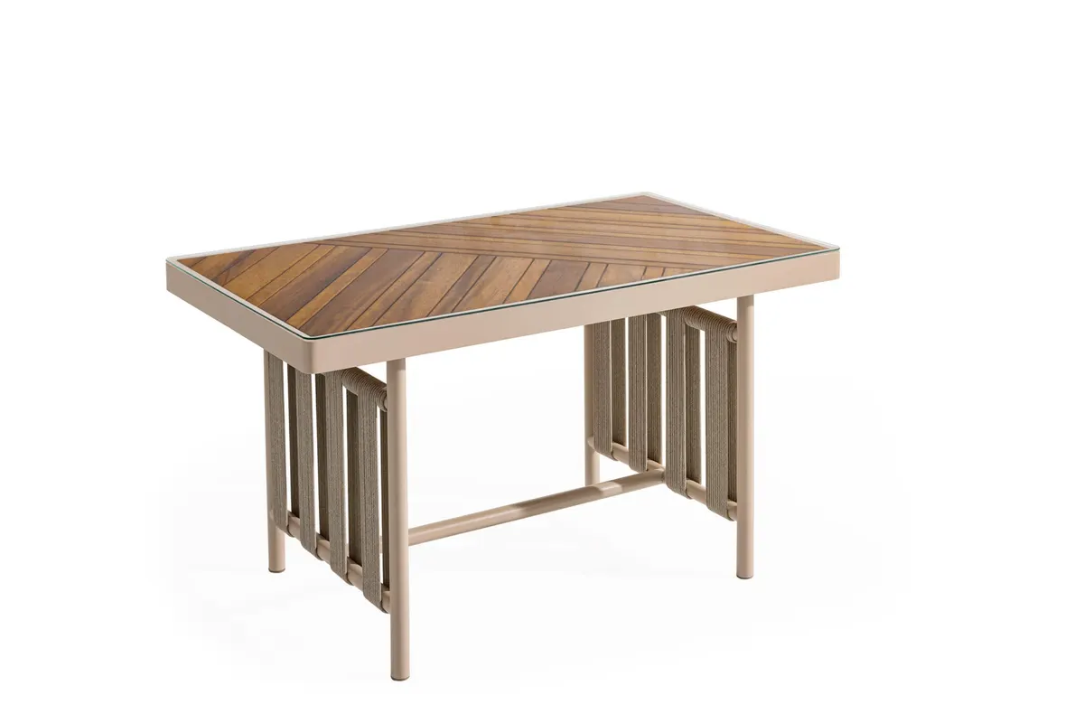 Uzun ömürlü alüminyum gövde, birinci sınıf İreko ağacı ve UV stabilizatörlü ip örgü ile hem şıklık hem dayanıklılık sunar.