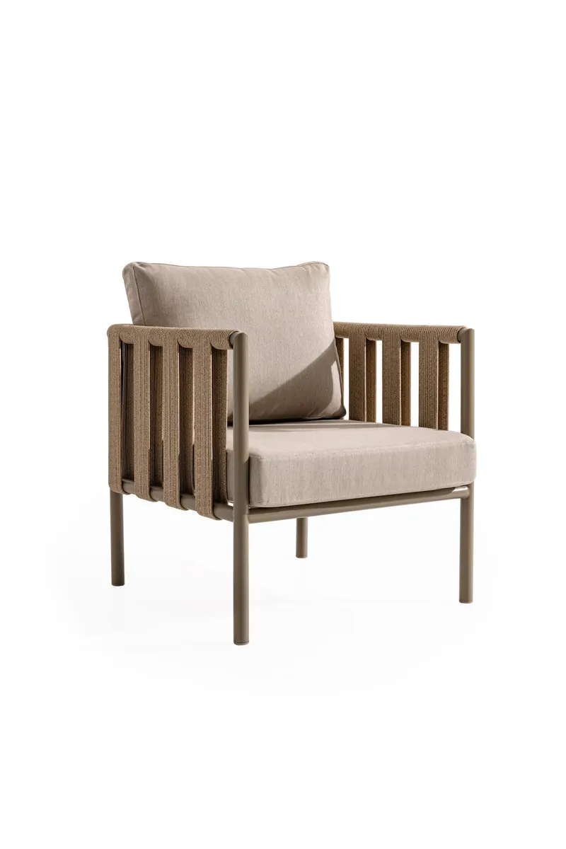 Uzun ömürlü alüminyum gövde, birinci sınıf İreko ağacı ve UV stabilizatörlü ip örgü ile hem şıklık hem dayanıklılık sunar.