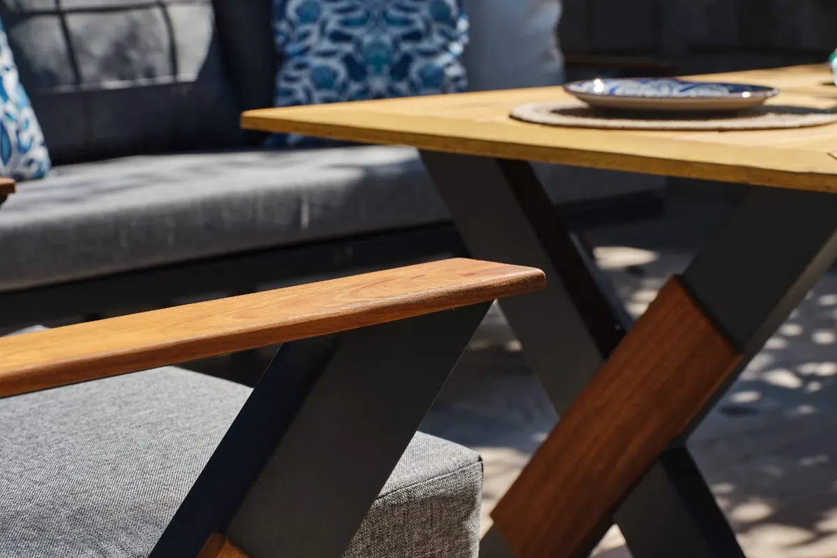 Farklı bir tasarıma sahip Lotus Oturma Grubu; alüminyumun ve ahşabın birleşimiyle göze hitabetini sürdürüyor. Rahat oturumu, paslanmaz yapısı ve minder kumaşlarının su itici özelliğiyle rahatlığınıza rahatlık katacak.