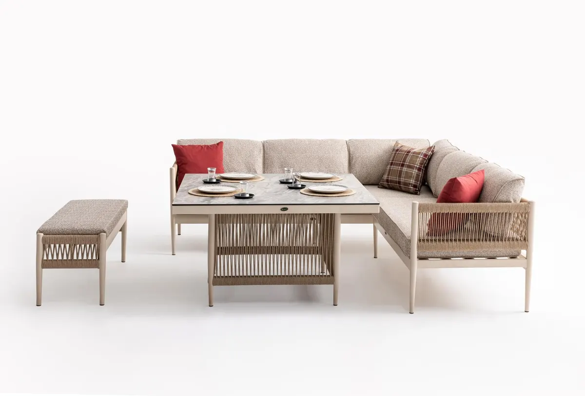 Lyon Bahçe Köşe Takımı, dış mekan dekorasyonunda şıklığı ve konforu sunar. Dar alanlara şıklık katan bu tasarımı Terazzi koleksiyonunda keşfedin ve hemen alın.
