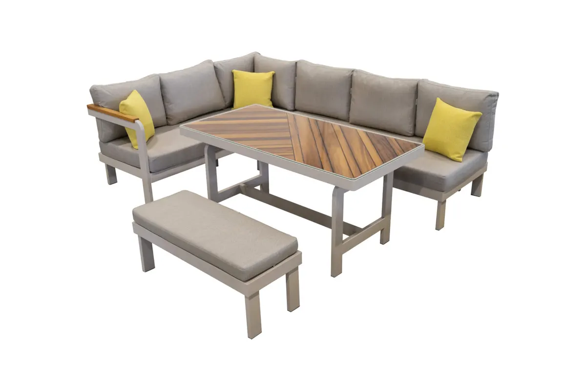 Uzun ömürlü alüminyum gövde, birinci sınıf İreko ağacı ve UV stabilizatörlü ip örgü ile hem şıklık hem dayanıklılık sunar.