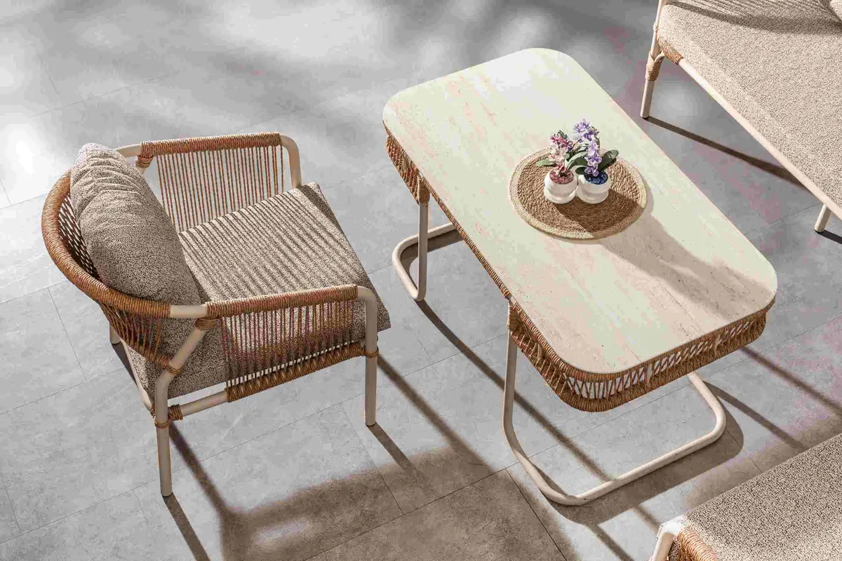 Martin Mini Bahçe Oturma Grubu, dış mekan dekorasyonunda şıklığı ve konforu sunar. Terazzi’nin kompakt çözümlerini inceleyin ve balkonunuzda mola alanı yaratın.