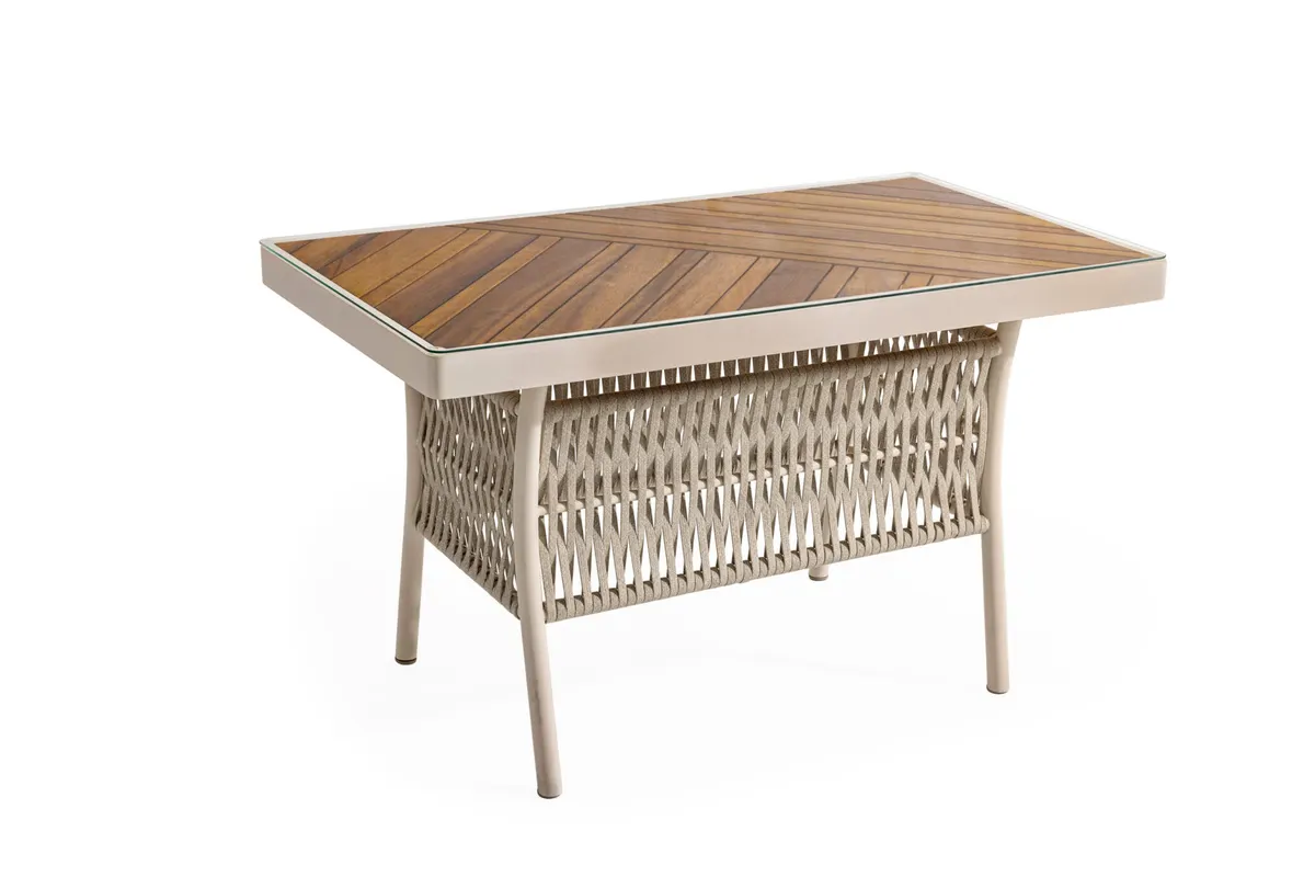 Uzun ömürlü alüminyum gövde, birinci sınıf İreko ağacı ve UV stabilizatörlü ip örgü ile hem şıklık hem dayanıklılık sunar.