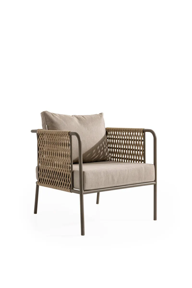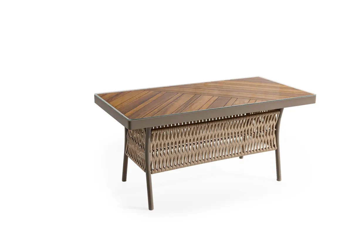Uzun ömürlü alüminyum gövde, birinci sınıf İreko ağacı ve UV stabilizatörlü ip örgü ile hem şıklık hem dayanıklılık sunar.