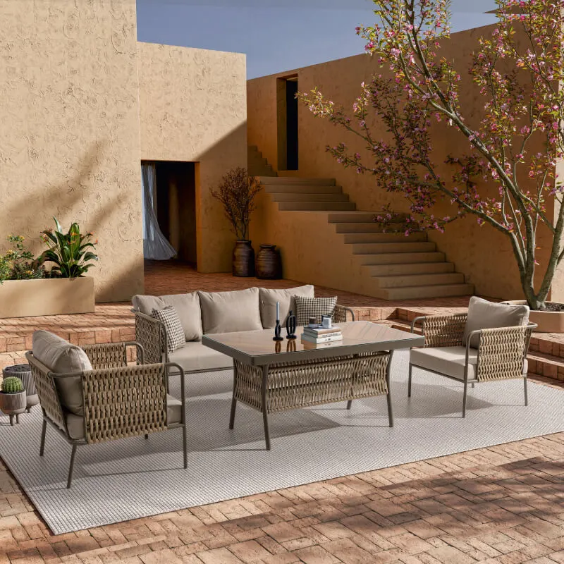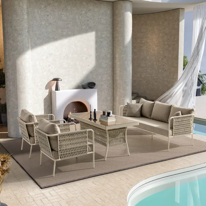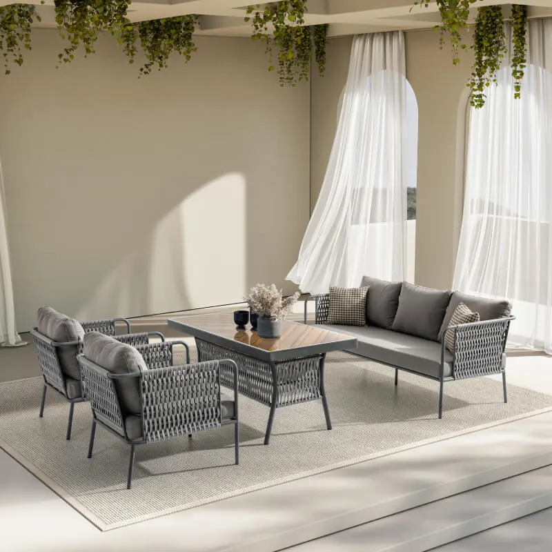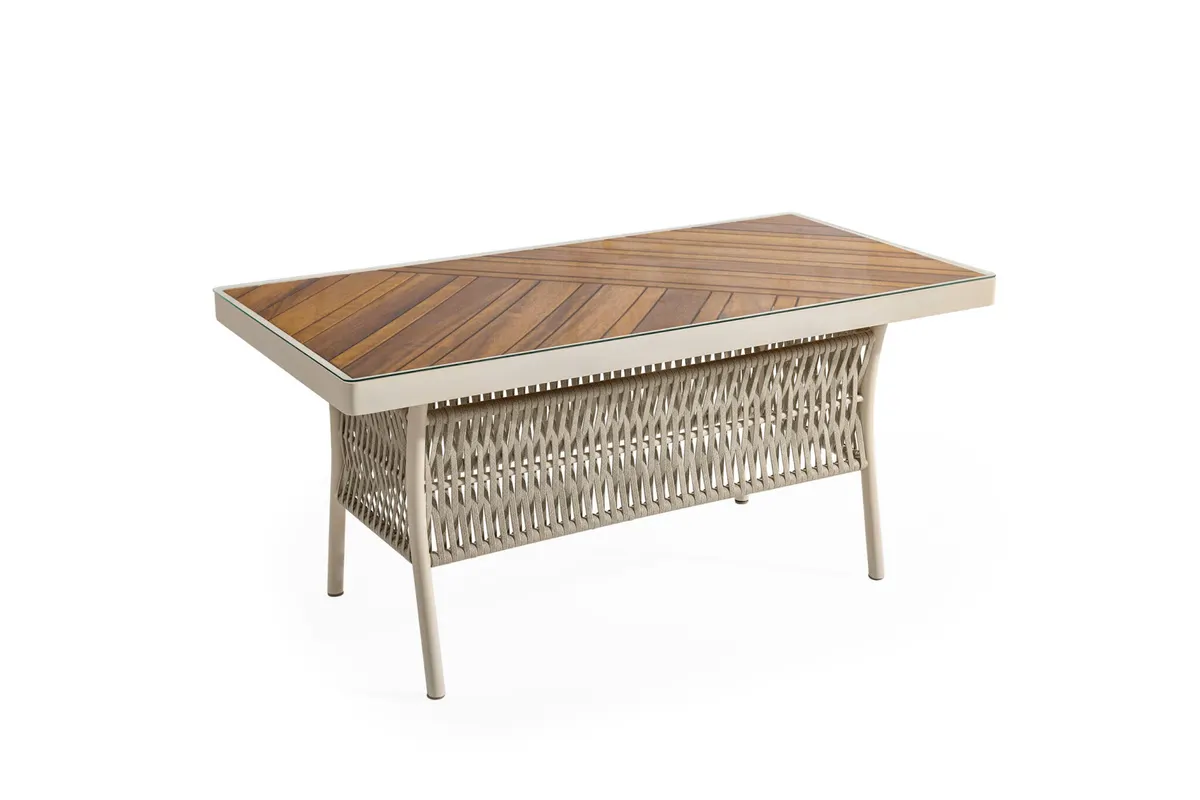 Uzun ömürlü alüminyum gövde, birinci sınıf İreko ağacı ve UV stabilizatörlü ip örgü ile hem şıklık hem dayanıklılık sunar.