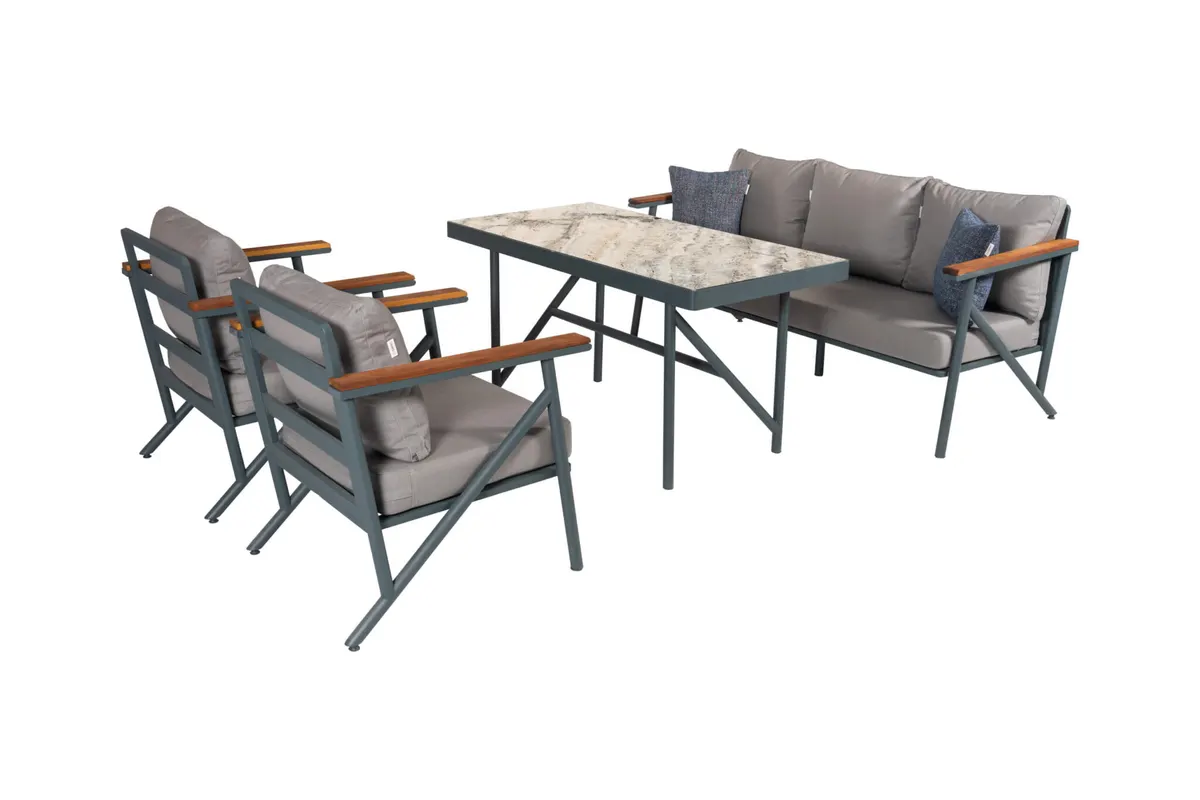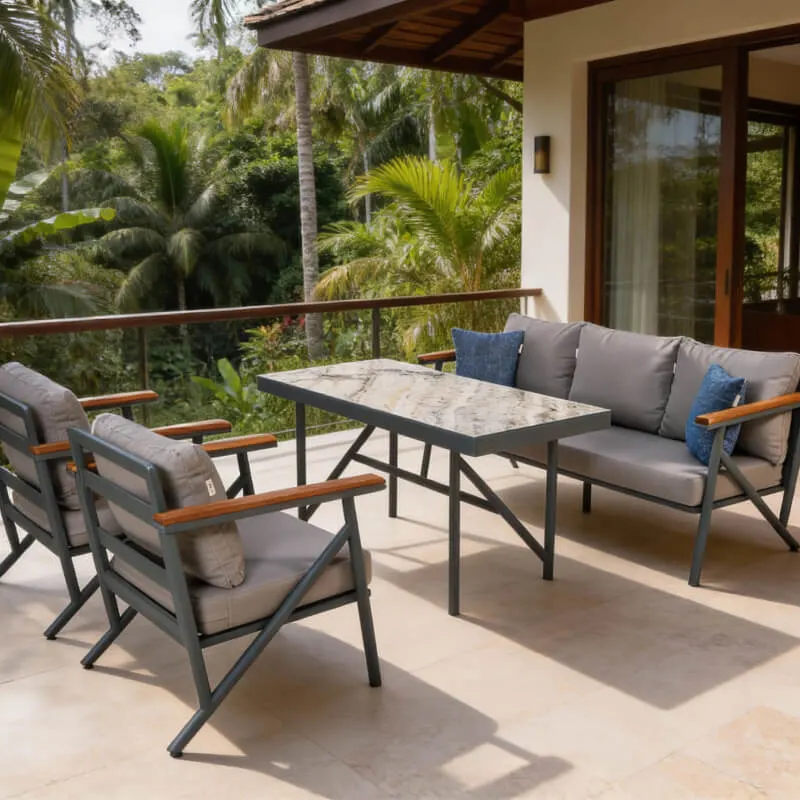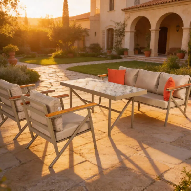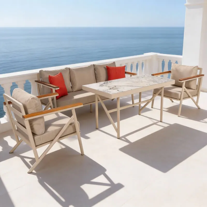 Uzun ömürlü alüminyum gövde, birinci sınıf İreko ağacı ve UV stabilizatörlü ip örgü ile hem şıklık hem dayanıklılık sunar.