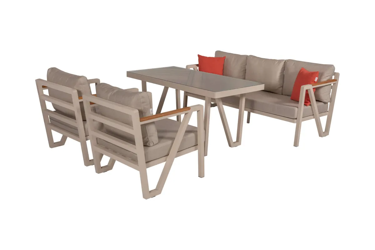 Uzun ömürlü alüminyum gövde, birinci sınıf İreko ağacı ve UV stabilizatörlü ip örgü ile hem şıklık hem dayanıklılık sunar.