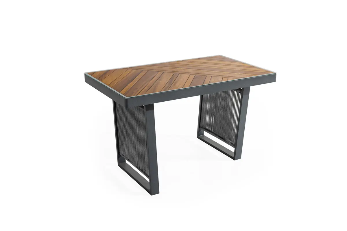 Uzun ömürlü alüminyum gövde, birinci sınıf İreko ağacı ve UV stabilizatörlü ip örgü ile hem şıklık hem dayanıklılık sunar.
