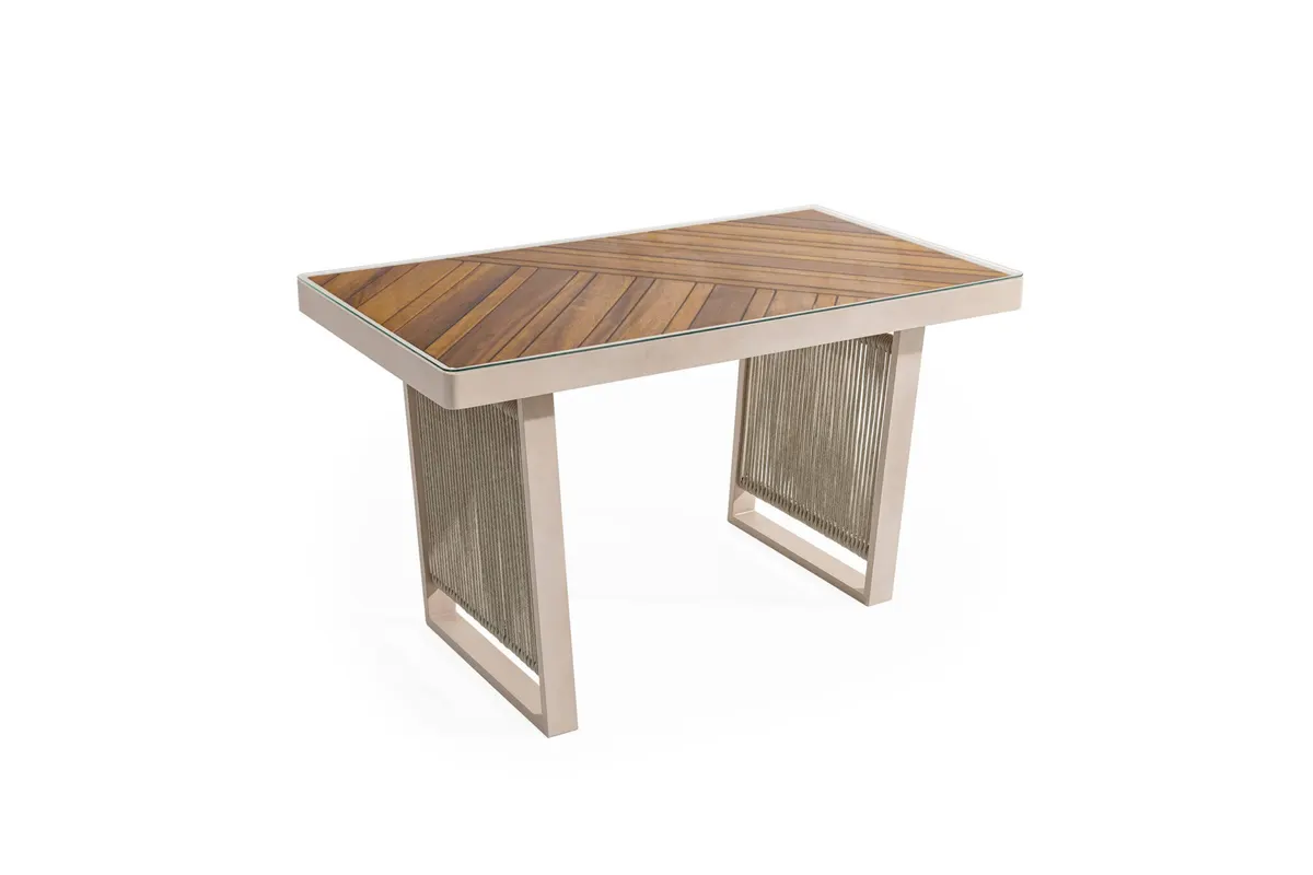Uzun ömürlü alüminyum gövde, birinci sınıf İreko ağacı ve UV stabilizatörlü ip örgü ile hem şıklık hem dayanıklılık sunar.