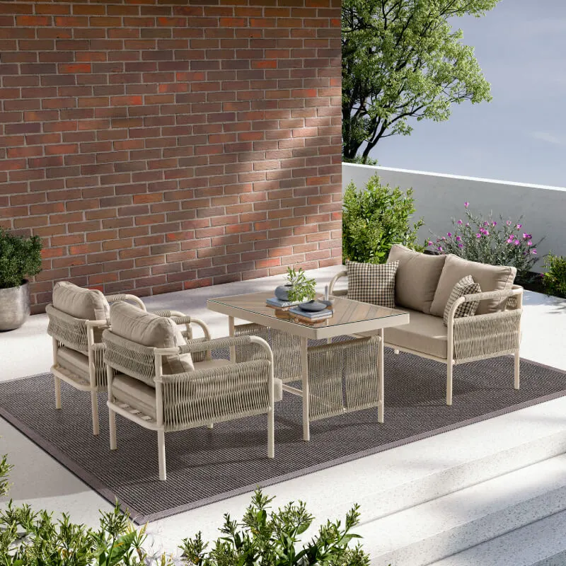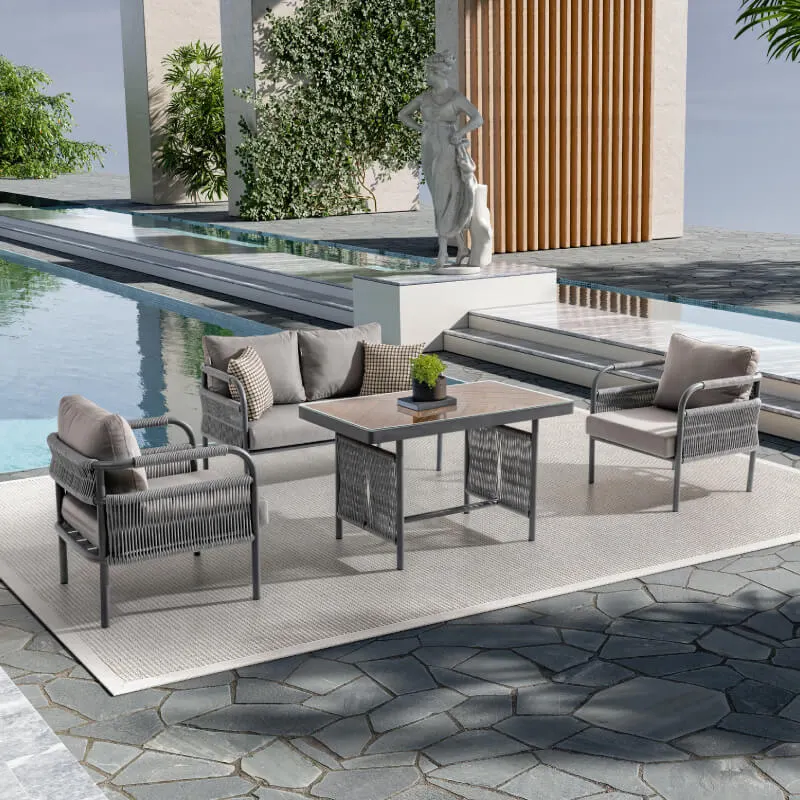Uzun ömürlü alüminyum gövde, birinci sınıf İreko ağacı ve UV stabilizatörlü ip örgü ile hem şıklık hem dayanıklılık sunar.
