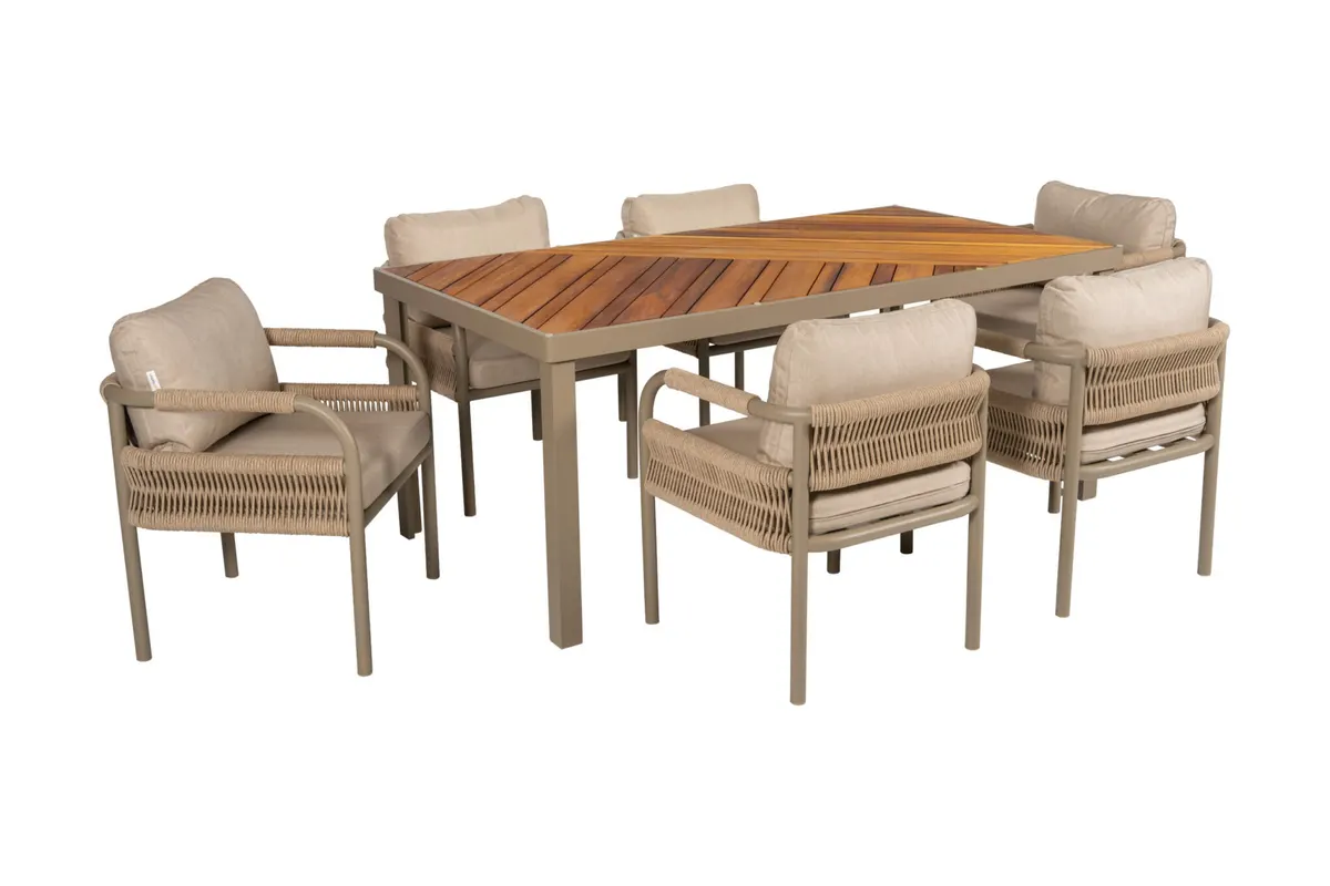 Uzun ömürlü alüminyum gövde, birinci sınıf İreko ağacı ve UV stabilizatörlü ip örgü ile hem şıklık hem dayanıklılık sunar.